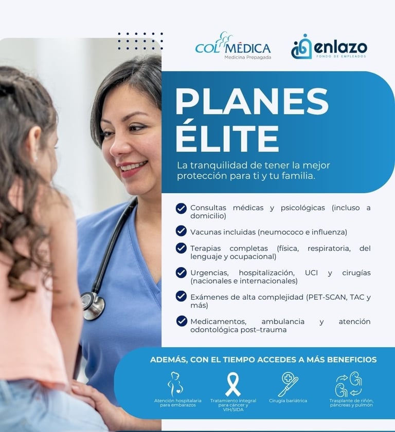 Con nuestro convenio con Colmedica medicina prepagada, accedes a atención médica oportuna, planes flexibles y beneficios exclusivos para cuidar de ti y de quienes más quieres.